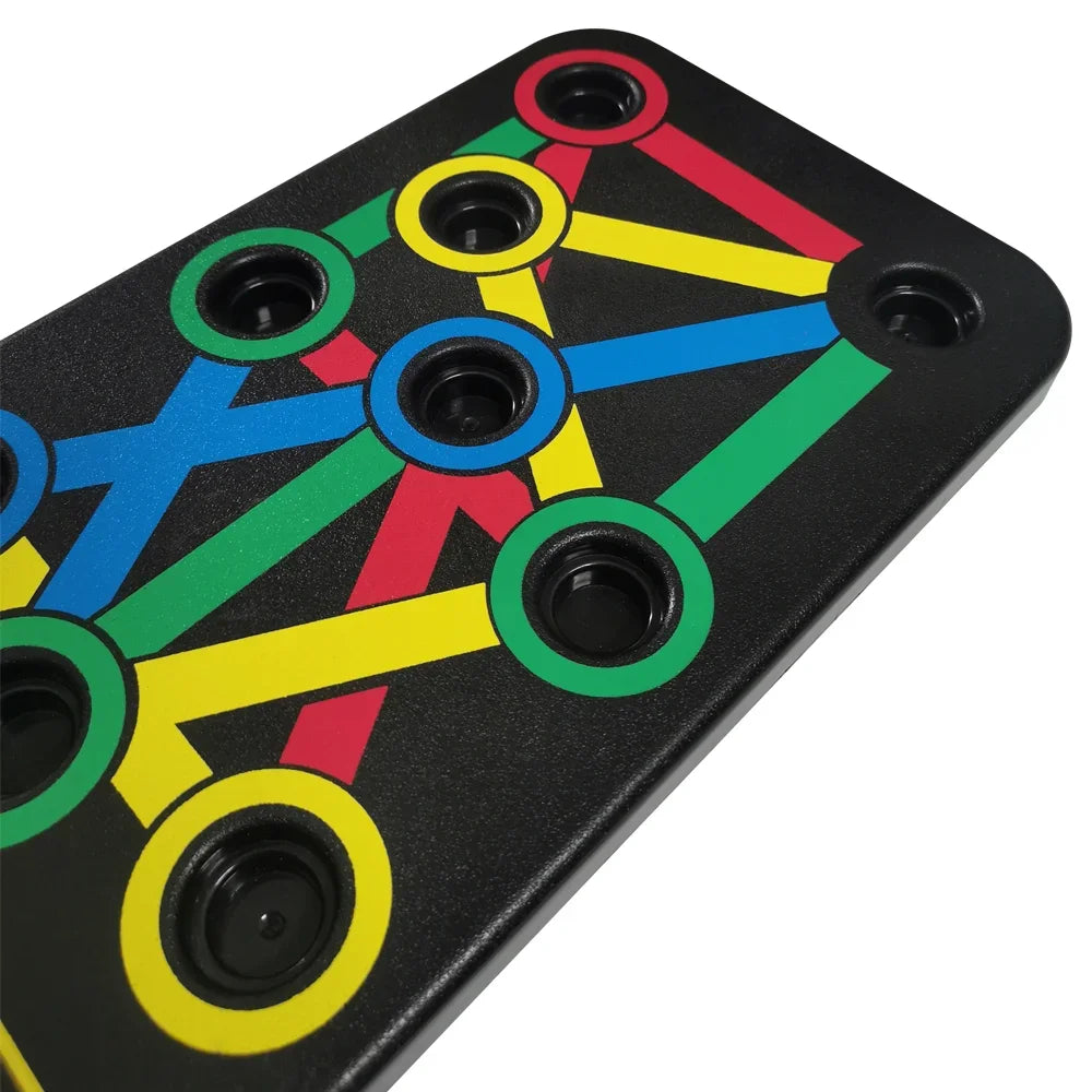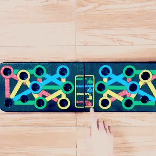 The 14-in-1 Push-Up Rack Board uses a color-coded system to help users easily identify hand positions for various exercises. Each color targets a specific muscle group: blue for the chest, red for the shoulders, yellow for the back, and green for the triceps. This intuitive design simplifies your workout and ensures you focus on the right muscles for more effective results.